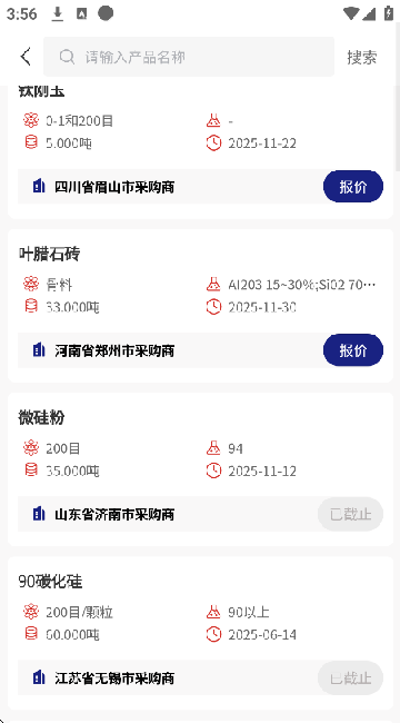 银耐联app专为耐火材料打造,是材料供应及采购服务平台。它为有需求的企业提供便捷采购途径,也给耐火材料供应商提供优质线上销货渠道。软件材料分类丰富,能让用户依分类轻松找所需材料资源。还设有不同榜单,可查看企业销售、采购、单品销售等排行信息。平台全电子模式,无需公司间写纸质合同及来回修改,节省奔波时间,快速达成材料采购交易。