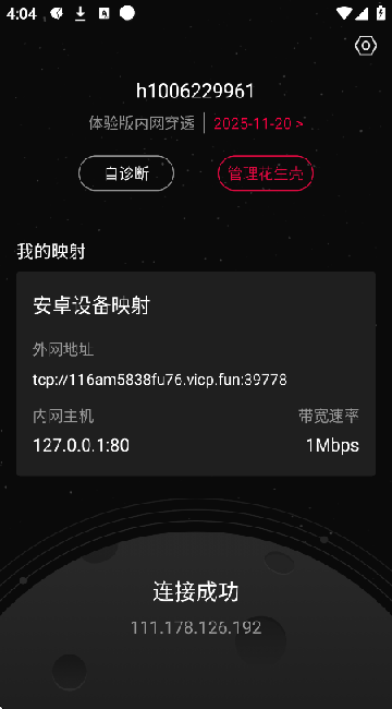 4、开启成功后无需进行其他设置,即可直接通过生成的外网地址访问内网的服务。