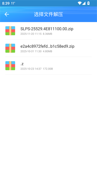 4、然后就可以看到当前设备内的压缩包文件,选择要解压的文件即可。