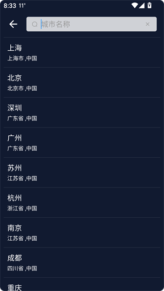 2、首次使用需要添加城市,在搜索框中输入城市名字即可添加。
