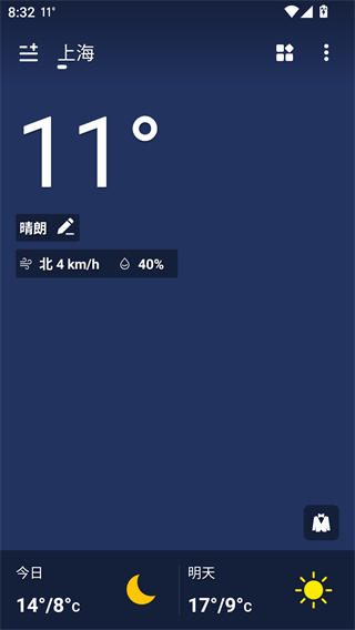 2、只要您添加了自己关注的城市,app就会自动为您提供城市的实时天气预报;