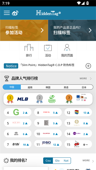 HiddenTag COP是一款超棒的标签扫描认证app哦!它能帮您检测商品到底是正品还是伪造的。只要开启扫描状态,就能快速获取产品内容,正品查询结果一下子就显示出来啦,还能看到标签解析情况呢。能查询品牌人气排行榜,关注每个品牌动态。这手机版随时能查商品真伪,是个方便的随身查伪工具,能追踪假冒产品,快速了解当下热门品牌,查看流行品牌,品牌内容和名称马上呈现,结果超快显示,真的很简便!