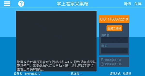 1、准备一台已连接OTG摄像头的手机,下载并安装掌上看家采集端软件。