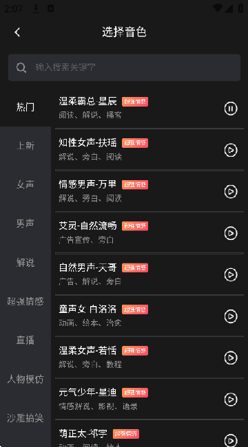 3、软件提供了超多热门的音色可以选择,都是免费的不需要你花钱。
