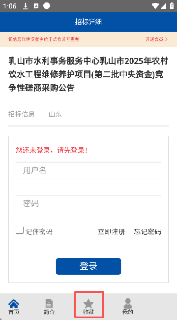 3、查看招标项目时,点击收藏图标一键收藏;招标信息可直接添加关注,招标活动开始时方便参与。
