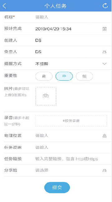 4、添加个人任务,可以填写详细的任务信息,一键提交上去。