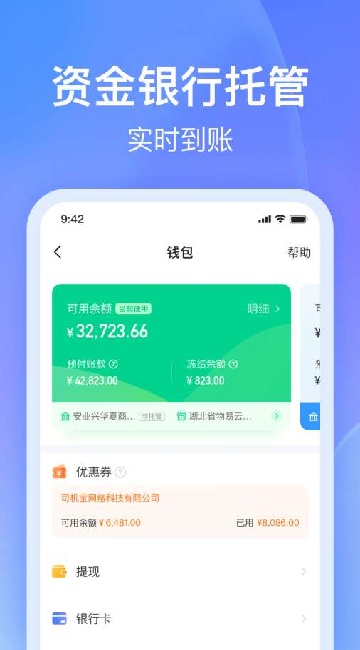 3、提供安全可靠的资金银行托管服务,让企业用户可放心地支付货物运输费用;