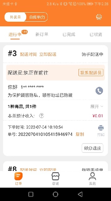 1、在线处理订单,自动接单之后商家可以在此进行发货、配送等订单处理;