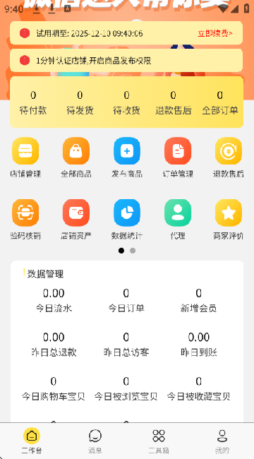 6、营销数据统计,能够为用户统计了店铺的营业情况;