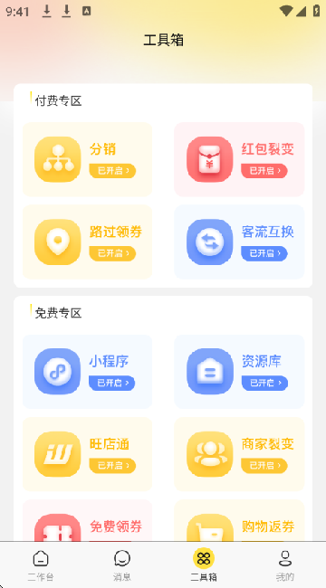 3、这里的工具箱功能丰富,各种促销工具和服务都能看到;