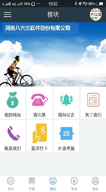 3、在模块界面,有钱包、通讯录、通知等功能,方便办公。