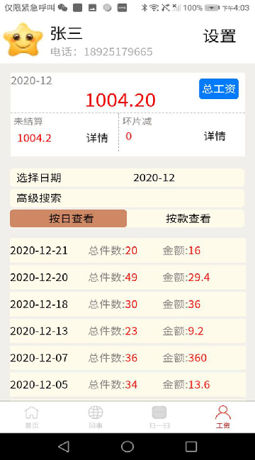 3、在掌上记录每日工资的结算情况,一手掌握工资结算状态;