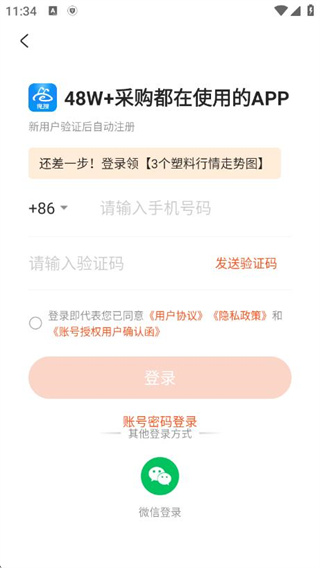 2、在登录界面,使用手机号或其他方式完成账号登录。