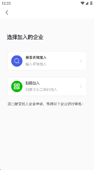3、加入企业可以扫码加入,也可以搜索名称加入,需要等待审核通过。