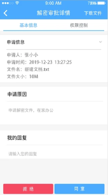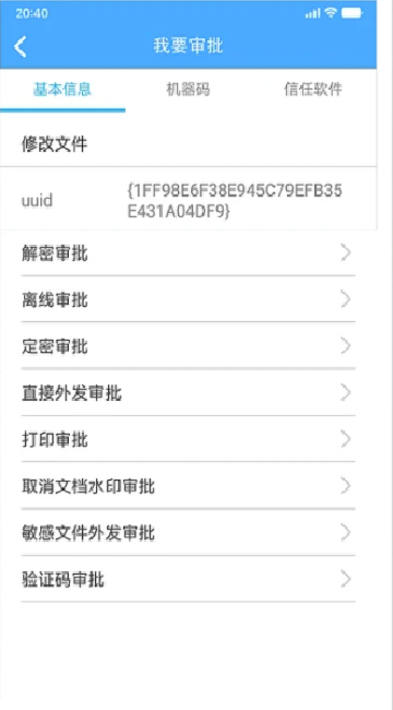 天锐绿盾app由厦门天瑞科技有限公司创建,用于帮助处理文件审批问题。可对文档进行加密并直接在线阅读,最大限度保障企事业单位的数据安全。加密文件、加密邮件附件可在线阅读审批,审批消息实时推送,极大保证了审批的及时性,改善了企业事务。提高工业单位用户的办公效率;具有编辑和保存加密文件的功能,对文件编辑非常方便。可一键发送加密文件并进行秘密审批;审批记录自动统计,有据可查,内容非常详细。您只需输入查询条件,即可在线进行文件审批查询,了解文件审批结果,满足行业用户的文件加密审批需求。