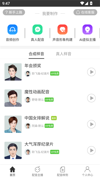 1、可浏览合成主题与真人主题的配音资源;
