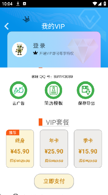 1、首先需充值成为 vip,方可将制作好的简历保存下来。
