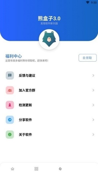 3、呈现软件版本,涵盖福利中心、反馈与建议、加入群、检测更新等。