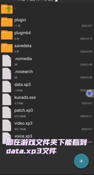 4、之后便能在游戏文件夹中看到data.xp3的游戏文件;