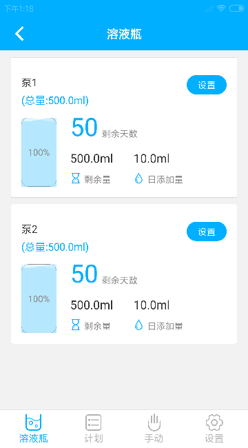 6、溶液余量监测:通过传感器数据实时显示溶液容量,低量自动提醒;