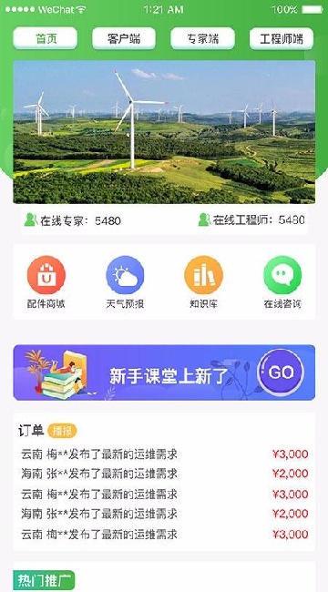 1、支持一键发布风电设备维修需求,订单信息实时同步至平台;