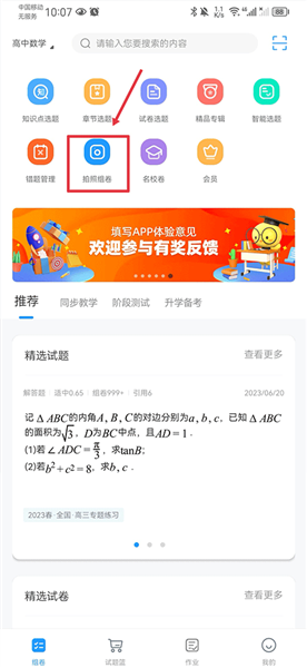 1、在组卷中心选择「拍照组卷」功能