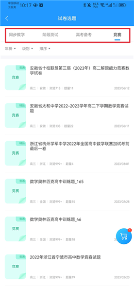 2、按学科、年级等条件筛选目标试卷