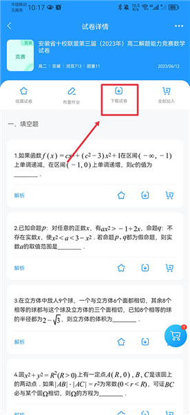 3、在试卷详情页点击「下载」按钮(部分资源需会员)
