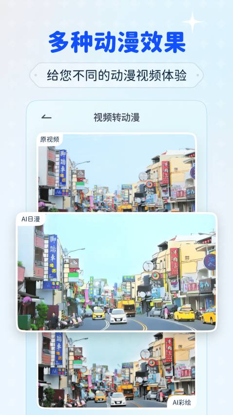 3、提供丰富的动漫效果预览选项,用户可自由选择不同风格效果,体验多样化的创作乐趣。