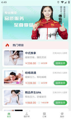 3. 提供了多种按摩项目选择,包括经典按摩、推拿、足疗等,用户可以根据自己的需求选择合适的按摩项目。