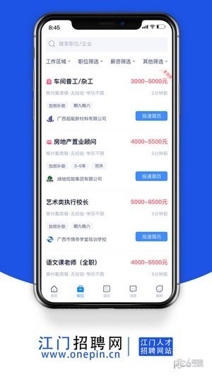 江门招聘网是一款非常好用的求职招聘软件。江门招聘网app有大量的职位是比较靠谱的。大家可以直接去网上找适合自己的工作。江门招聘网app为大家聚集了大量优质岗位。有需要就来下载江门招聘网app吧。