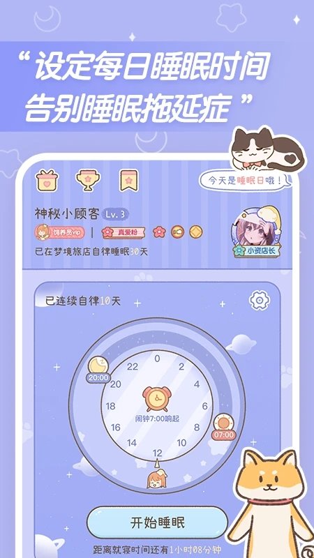 让你准时睡觉变得有趣又轻松,在睡梦中建造你专属旅店。