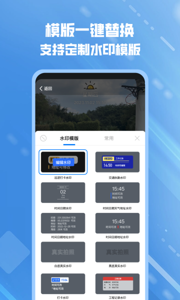 3、拥有丰富的水印模板库,满足各种场景的需求,让您的照片更加生动有趣。