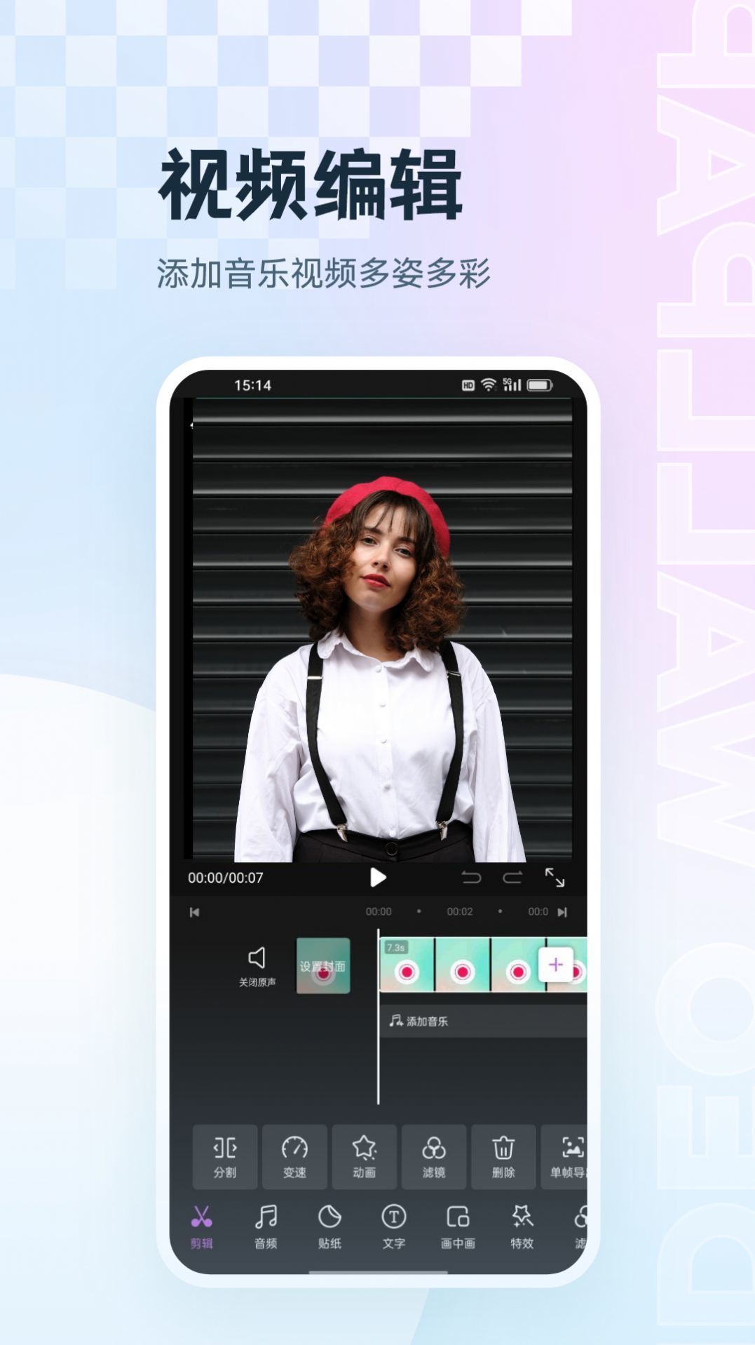 1、音视频混合编辑功能,让您将多张照片和视频混合编辑成一个短视频,为您的作品增添多种元素;