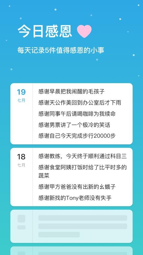 通过用户记录各种感恩事件和幸运事件,温暖和治愈用户的不开心时刻。