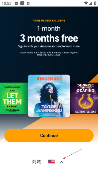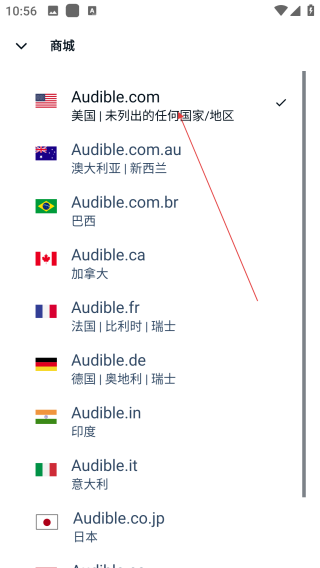 2、选对应国家/地区的【Audible商城】,如美国区。