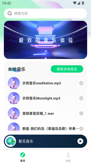 3、扫描完成之后主页会展示本地的所有音乐内容;