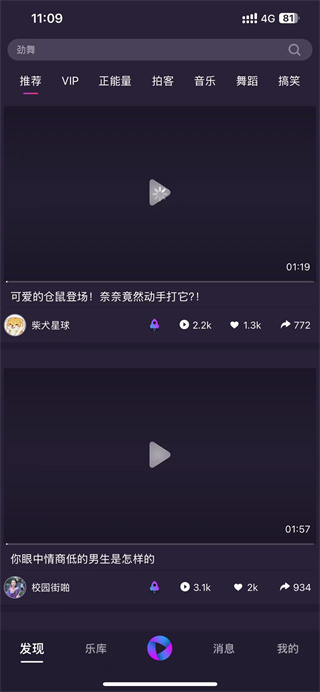 2、在这里可以看到推荐的一些有趣好玩的短视频等内容;