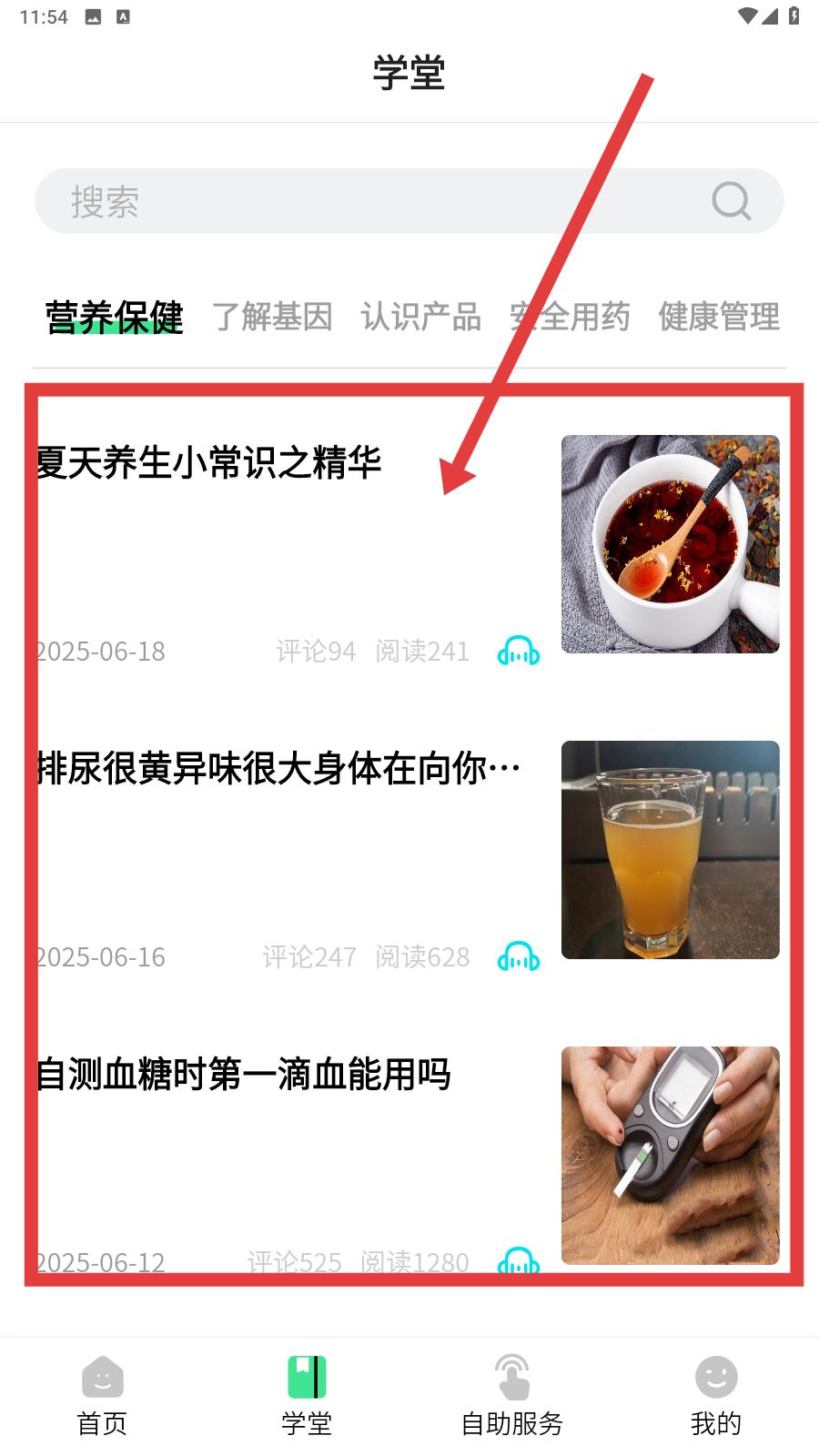 5、在健康讲堂页面,即可翻看为你推送的健康资讯