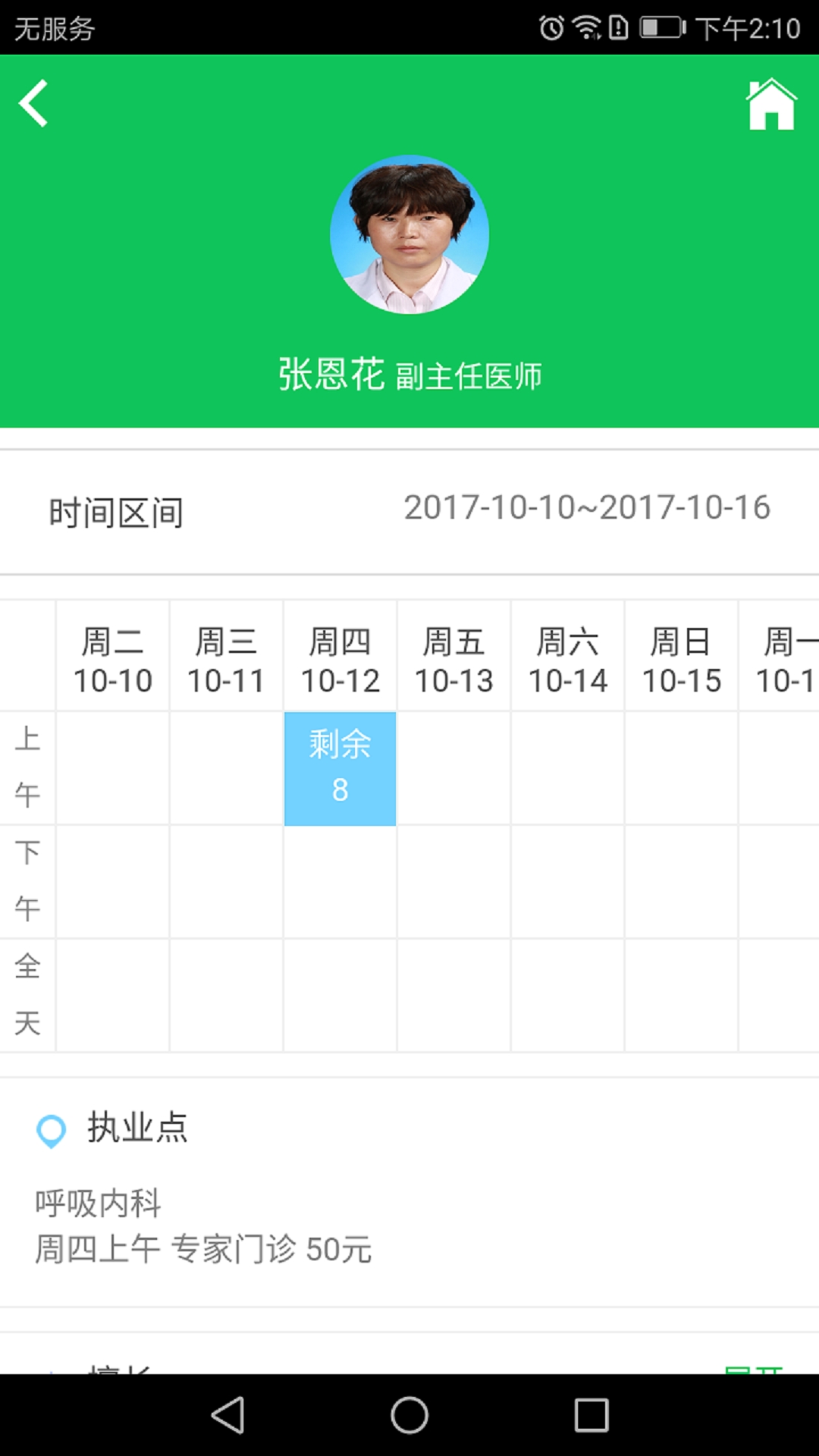 4、在信息查询找医生,看张恩花等医师排班,选时间预约挂号。