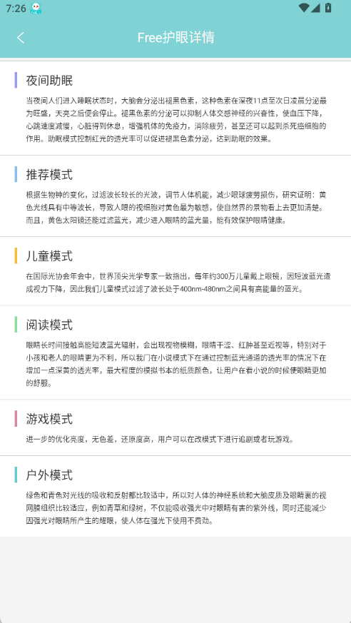 5、防辐射,研究发现,蓝光能穿透晶状体到达视网膜,对其造成光学损害,Free护眼帮您快速过滤蓝色光波,保护眼睛;