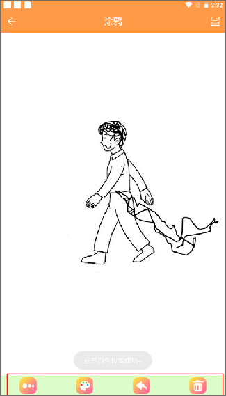 2、在选好之后点击以进入创作页面,处在下方的诸如字体大小、画笔颜色、返回以及删除这些操作,均是用以制作涂鸦作品的工具。
