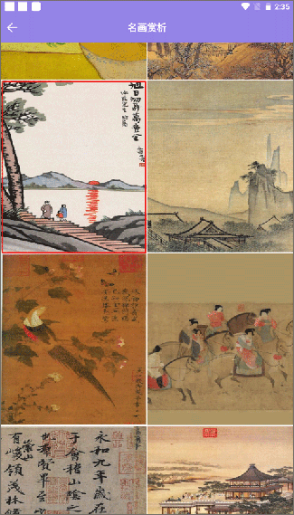 1、点击进入【名画赏析】界面,在名画赏析列表里同样选出其中一个作品来作为桌面壁纸。