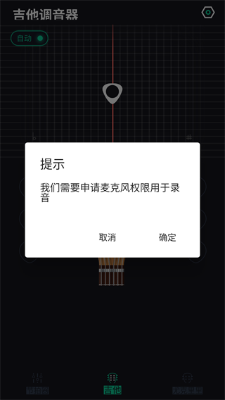 3、在首页可以开始对吉他进行调音,左上角可以选择手动或者自动;