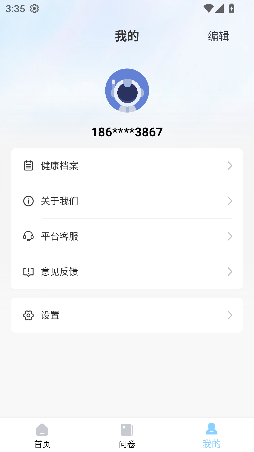 1、打开软件,进入我的页面,可查看健康档案、联系客服等,管理个人信息与设置 。