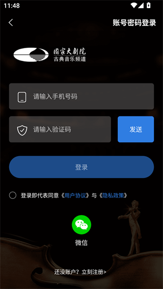 2、点击立即登录,输入手机号,获取验证码完成登录;
