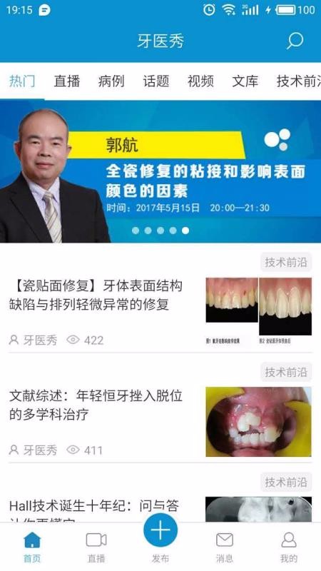 3、在“热门” 页面,查看牙医秀病例、话题等内容,了解临床案例与技术前沿。