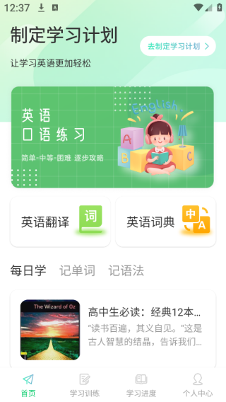 2、然后进入到主页之中一起来制定你们的学习计划,开启你们的每天学习;