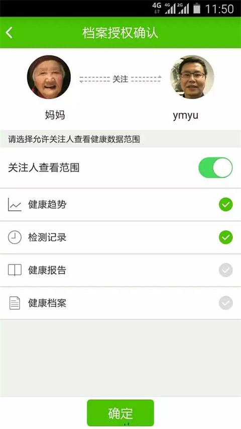 4、这样就能看到就健康状态,可以任意添加亲人。