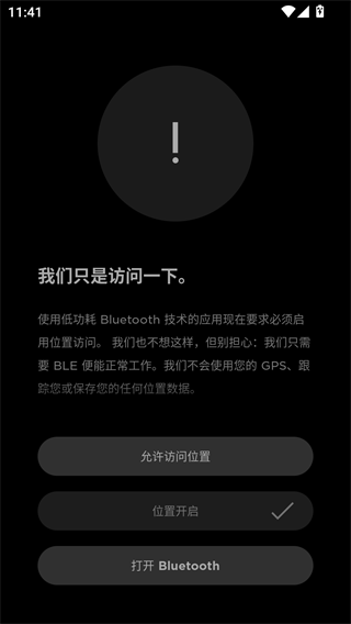 2、提示需要开启位置以及蓝牙权限,点击开启即可;